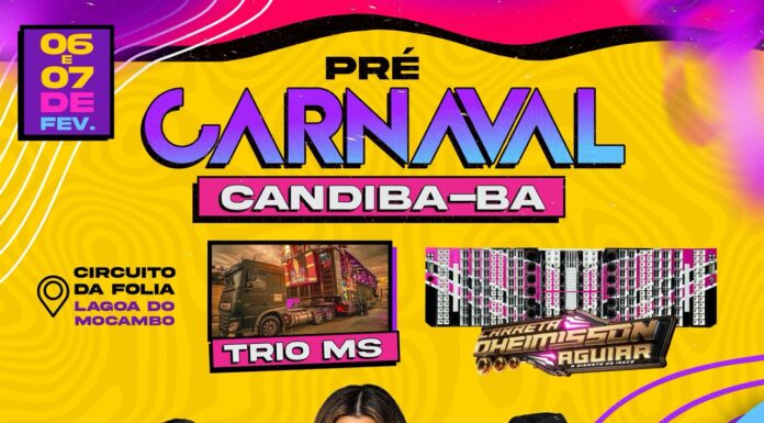 PRÉ CARNAVAL DE CANDIBA, 06 e 07 de Fevereiro, NETO LX, LAMBASAIA, VINA CALMON, KUARTO DE EMPREGADA, LUXÚRIA, SOM DO POVO, Carreta DHEIMISSON AGUIAR (A GIGANTE DE IRECÊ), TRIO...